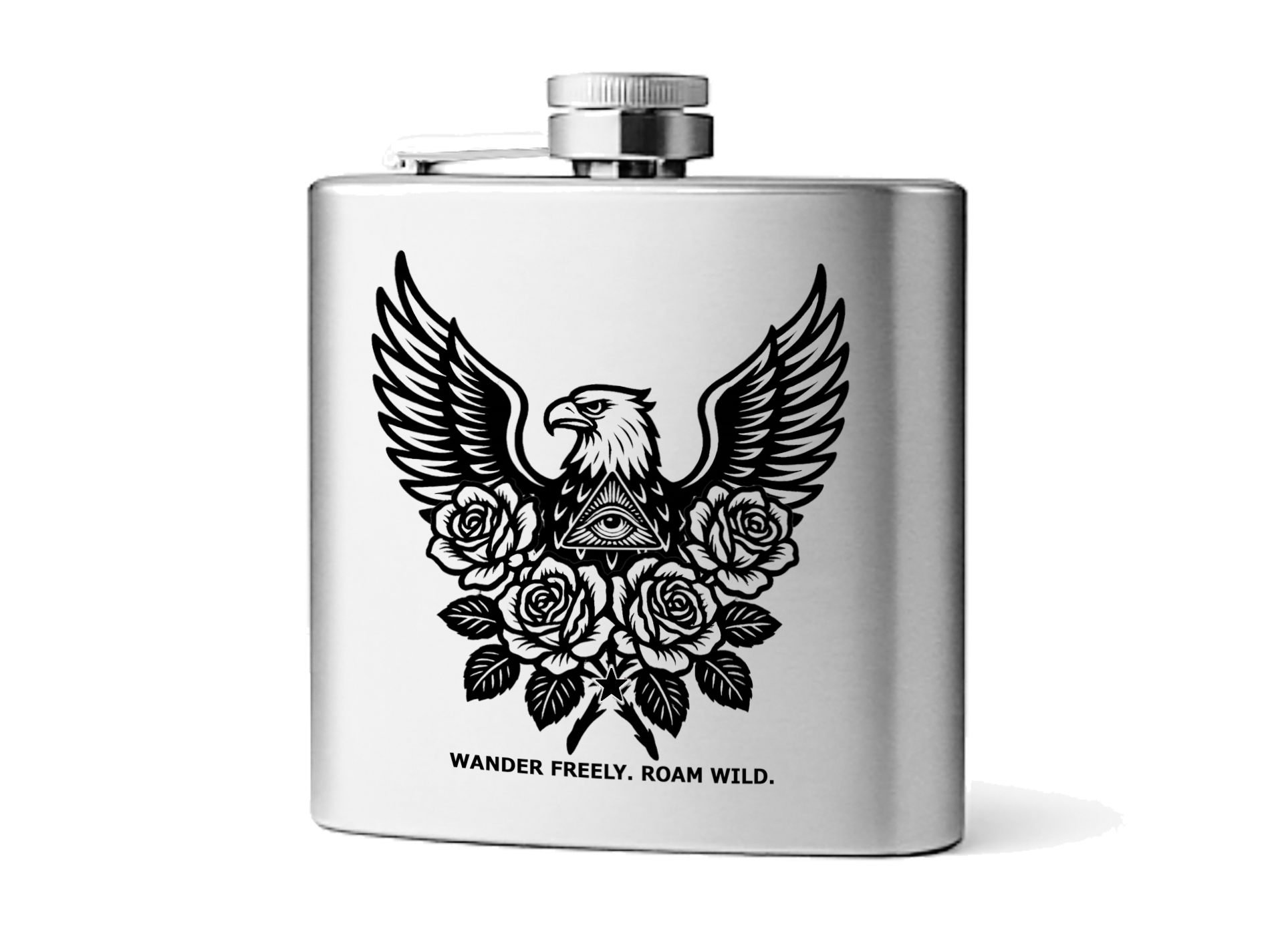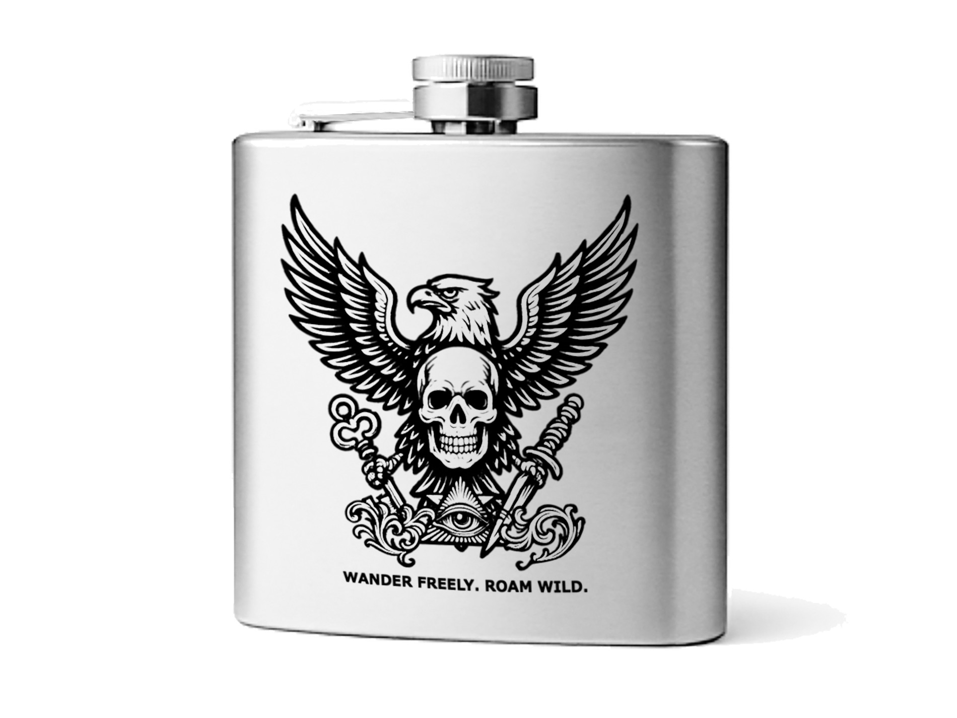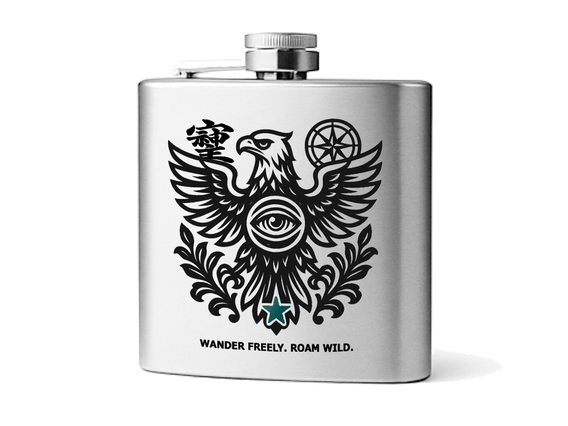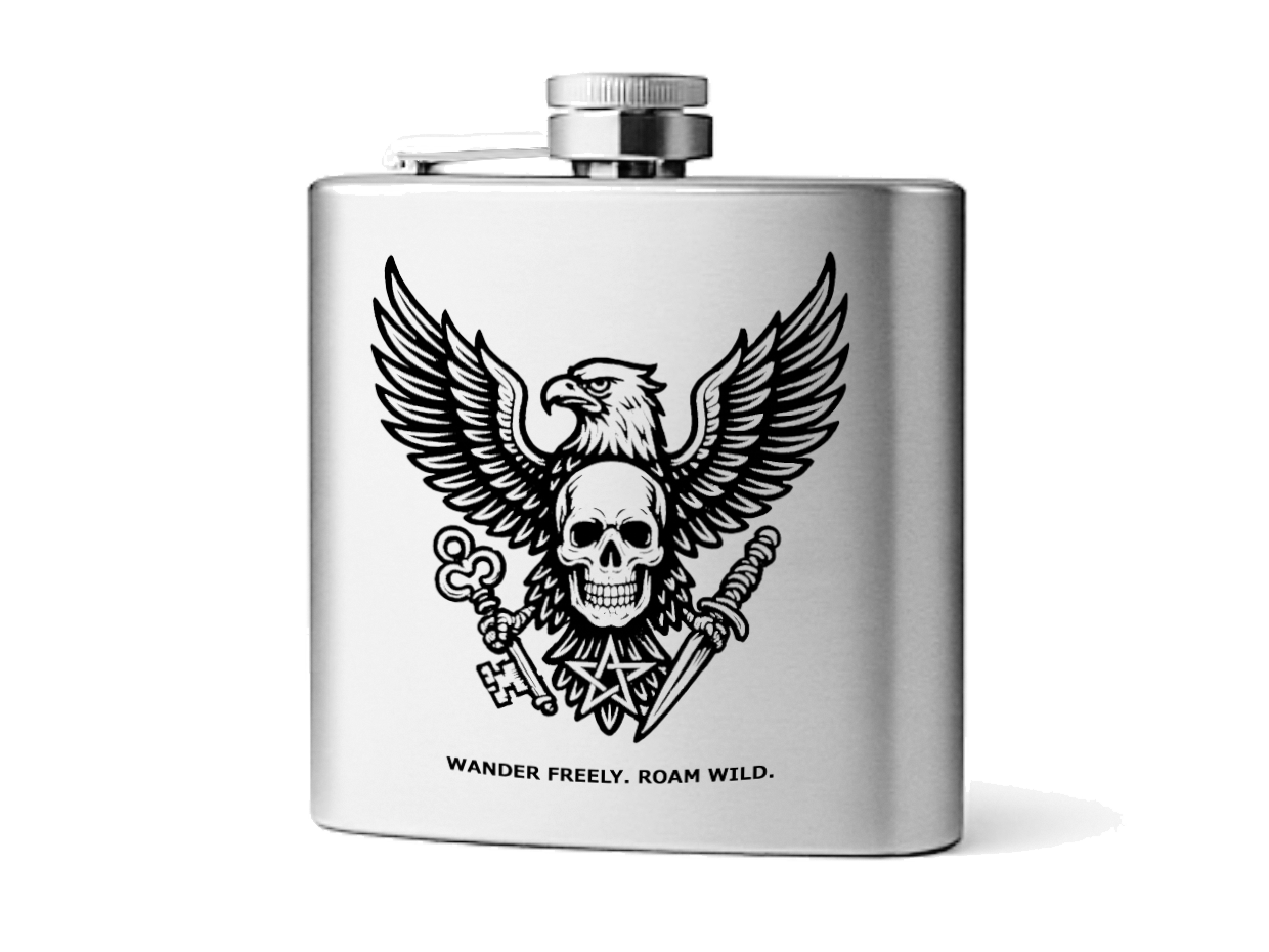 刻まれた意志は、語らずとも伝わる。このスキットルに彫られたシンボルは、あなたの内なる旅の地図だ。鷲…